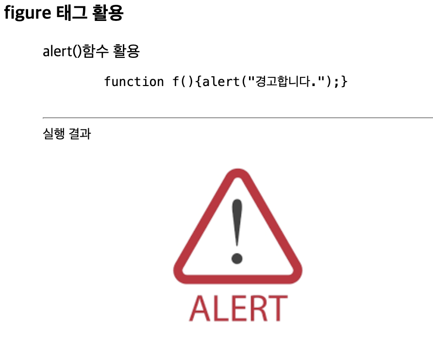 ex) alert()함수에 대한 설명과 실행 결과를 하나의 그림으로 블록화해서 출력함.